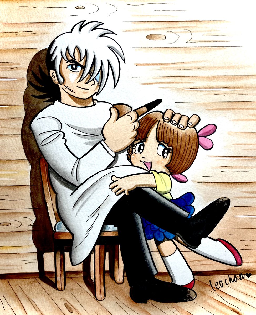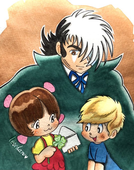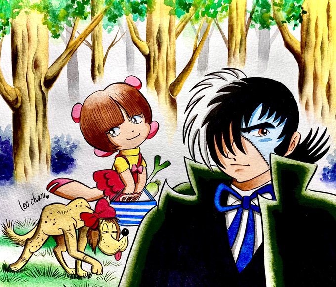 本日は、「ピノコ・ラブストーリー」より☘️ ピノコの恋の相手が誰なのか?気になるB・Jが、こっそり茂みから確認するのが可愛いですよね♡ #手塚治虫 #ブラックジャック・ピノコ #四つ葉・ラブレター #水彩画 #アナログ #イラスト王国 #ニジイラS