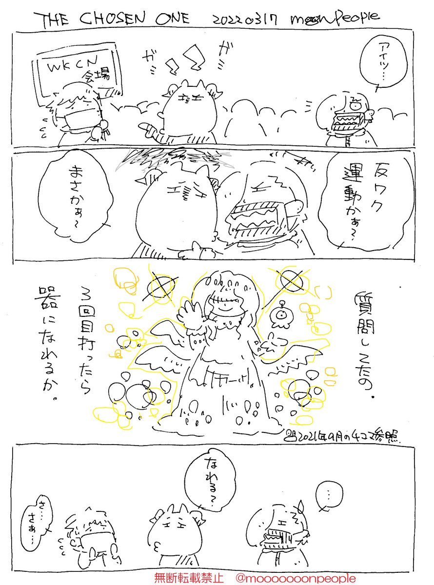 2022.03.17 THE CHOSEN ONE「選ばれし<器>」 「器」になって古のワールドワイドウェブに行くんじゃーっ!!!!! 自分で言うのもなんだけどwkcn打つと超越した存在になるって設定、めっちゃoh!cultみあるよね… #4コマ漫画 #創作漫画 #コメディ #ブラックジョーク #漫画が読めるハッシュタグ twitter.com/mooooooonpeo…
