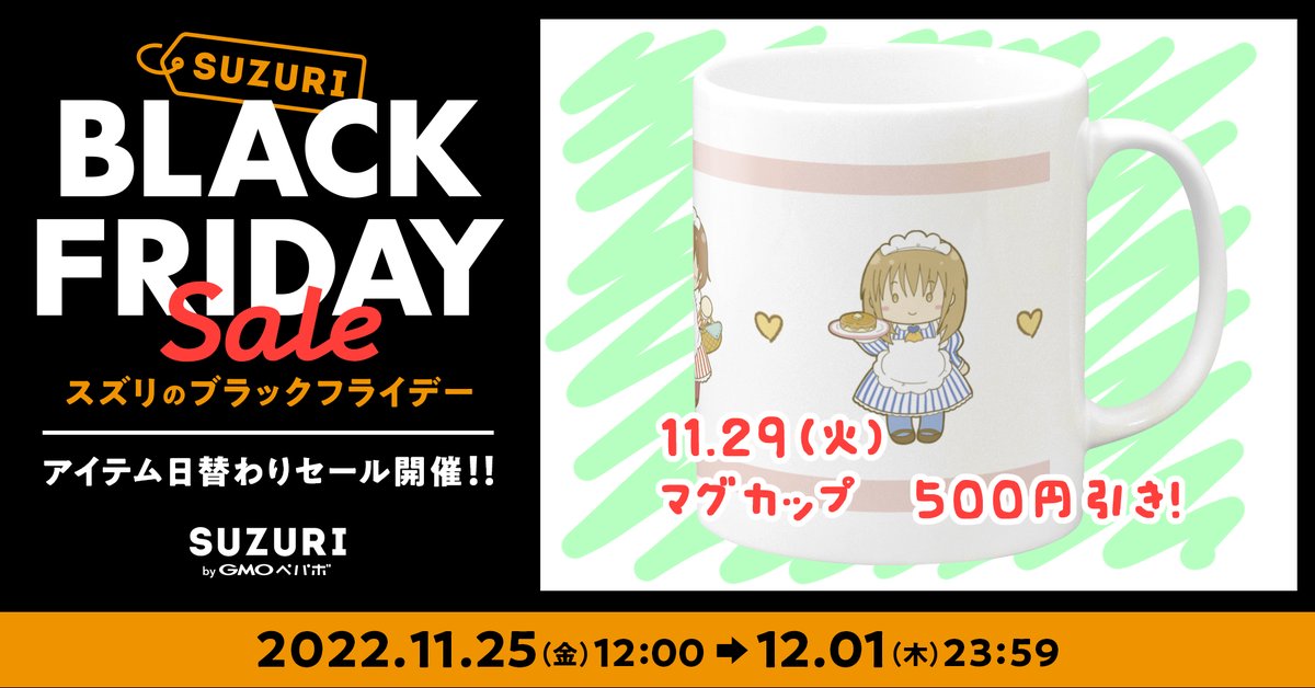 💚予告💚 11月29日(火)はブラックフライデーでマグカップが500円引き!! お買い得になるよ~🥰 #SUZURI #イラスト好きさんと繋がりたい #イラスト #オリジナルイラスト #ブラックフライデー suzuri.jp/ha24mo_koubou