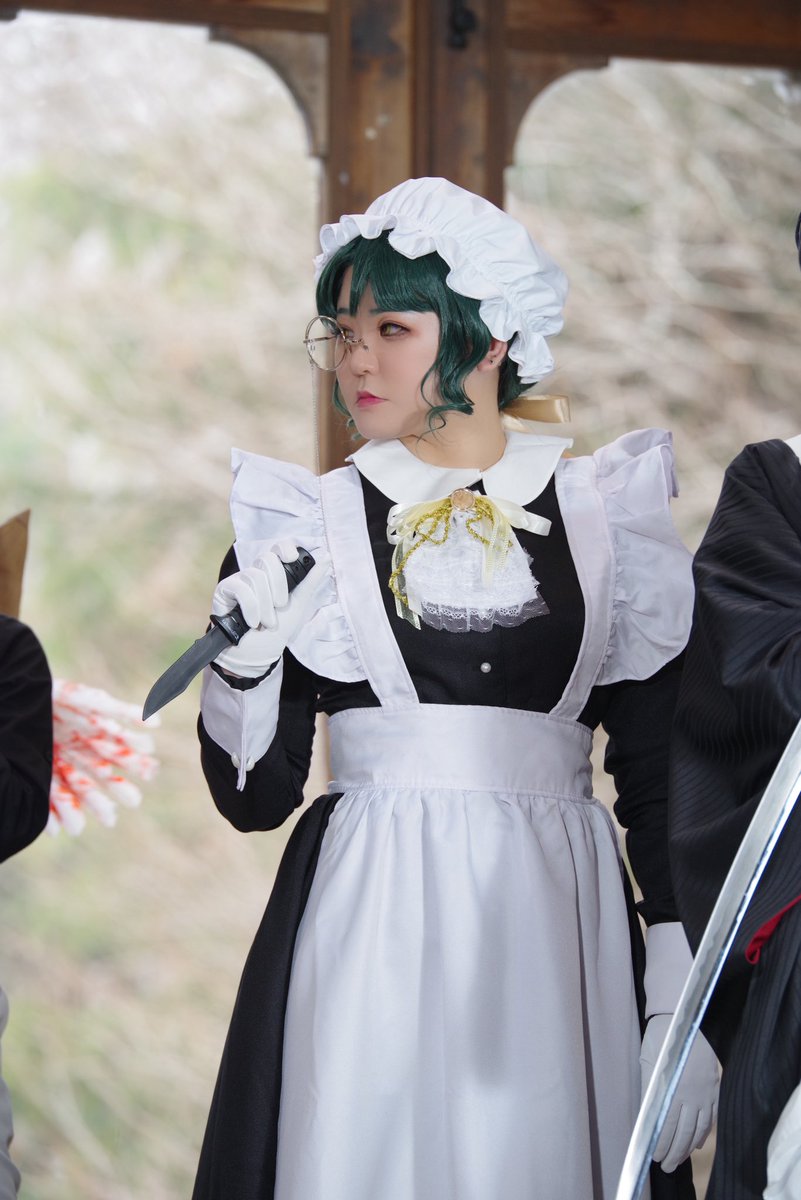 ブラメイ第3段射殺のメイドビオラで参加させて頂きました🏹🤍 全身自撮り撮るの忘れちゃったけど、珍しくズボンタイプのメイド服さんしてました!本当ブラメイメンも、カメラマンさんも、アシスタントさんも最高に素敵で楽しすぎたー! 時戻してぇ😭 #ブラックメイドレター
