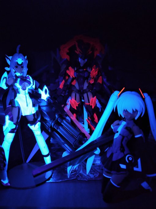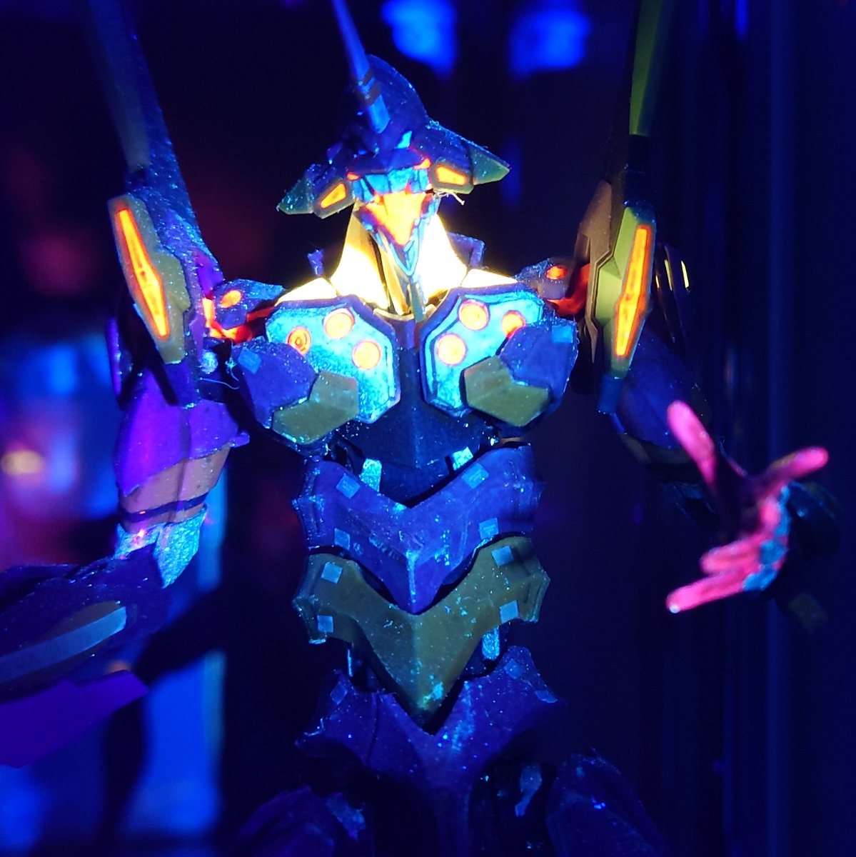 ブラックライトでRGユニコーン照らしたらすごいかっこいい! あとのはRGエヴァとニューガンダム どれも幻想的になりました(笑) ブラックライト楽しいな #ガンプラ好きと繋がりたい #ガンプラ #ガンプラの画像を貼るとRTされると聞いて #ブラックライト