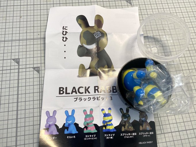 完成しました! 『BLACKRABBiT リスペクト GUN3』 BLACKRABBiTの制作者であるGUN3さんが行っていた塗装を真似て、カプセルトイ版ブラックラビットをリペイントしてみました! #ブラックラビット #SOーTA twitter.com/i/web/status/1…