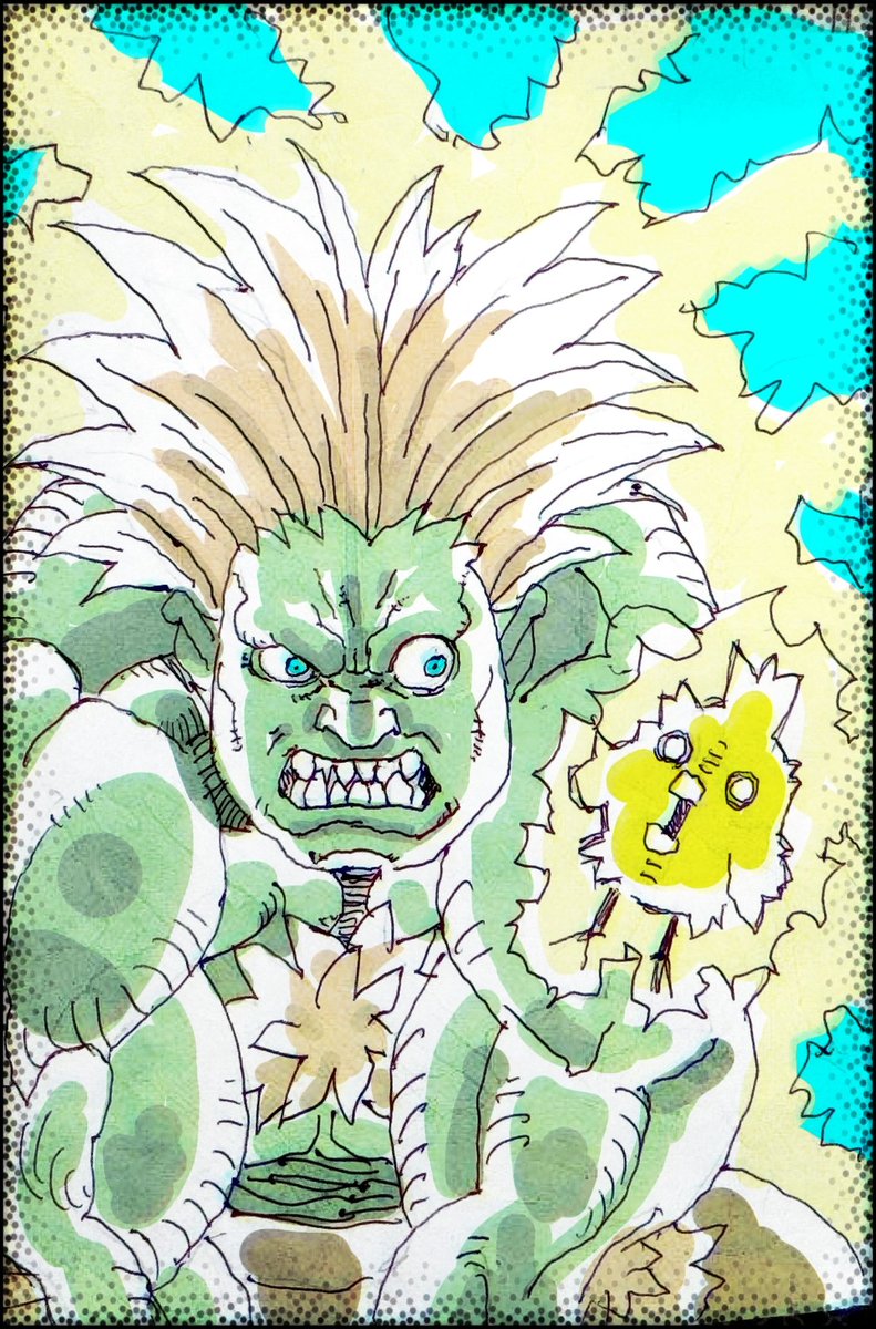 #落書向上委員会 #格ゲーキャラ描こうぜ #StreetFighter #ストリートファイター35周年 #ブランカ #落書き #イラスト練習中 ブランカ落書きしました✍️ 初代スト2の8キャラ全員描きます☆*°