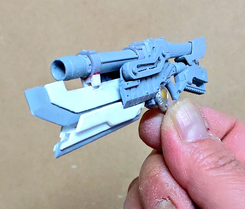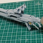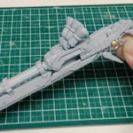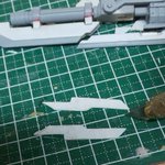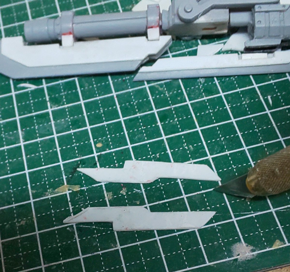 #ブリューナク改2製作 #アサルトリリィ #アサルトリリィドール部 #アサルトリリィCHARM部 #カスタムCHARM プラ板で形状プレートを作る。 積層処理で2枚同時にヤスリ整形 ブレードモードで仮付けして 大穴塞ぎ確認❗️ 取り付けラインを既存に倣う。 シューティングモードにしても 良さげかな❓️😂
