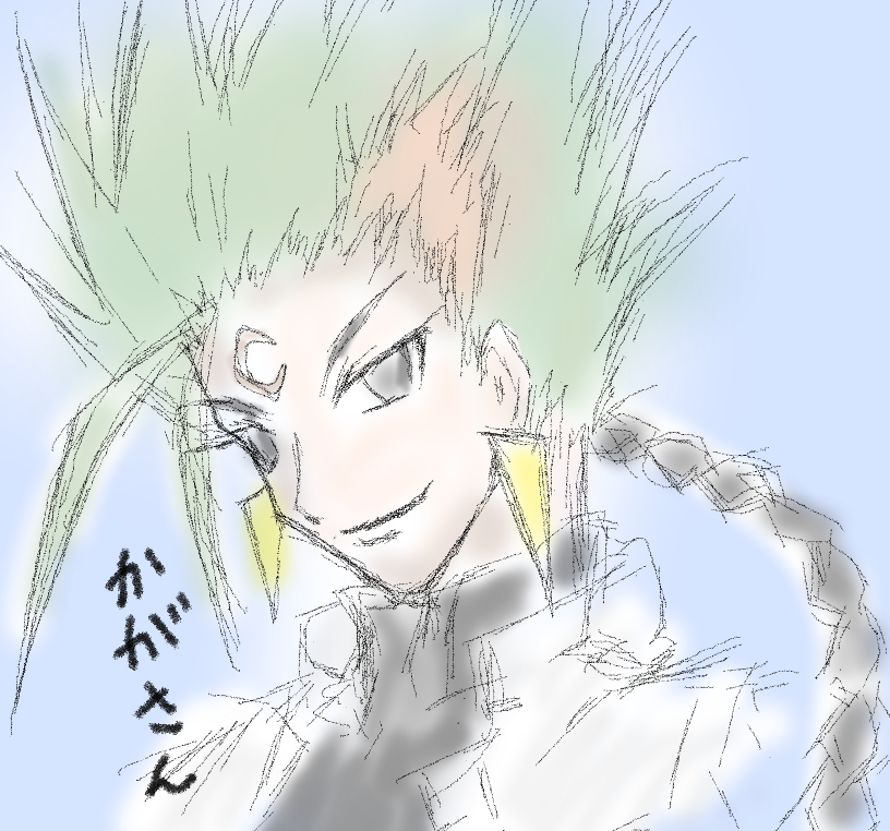 深夜クオリティで加賀さん落描き 童顔になってしまった… 半裸(なのか?)なのは服を描くのが面倒だったから← 2日遅れだけど、お誕生日おめでとうございました!! #ブリード加賀 #ブリード加賀誕生祭2022 #サイバーフォーミュラ