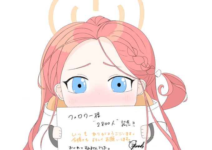 16枚目 万能型ユズ 2800フォロワー様記念。ユズのメッセージイラストを描きました。かわいく描けたと思います。じつはこれ、使いまわせちゃうんです。ぐへへ。(感想やアドバイスなどがございましたらどんどんお願いします! #イラスト100枚チャレンジ #ブルアカ勢と繋がりたい #ブルアカ