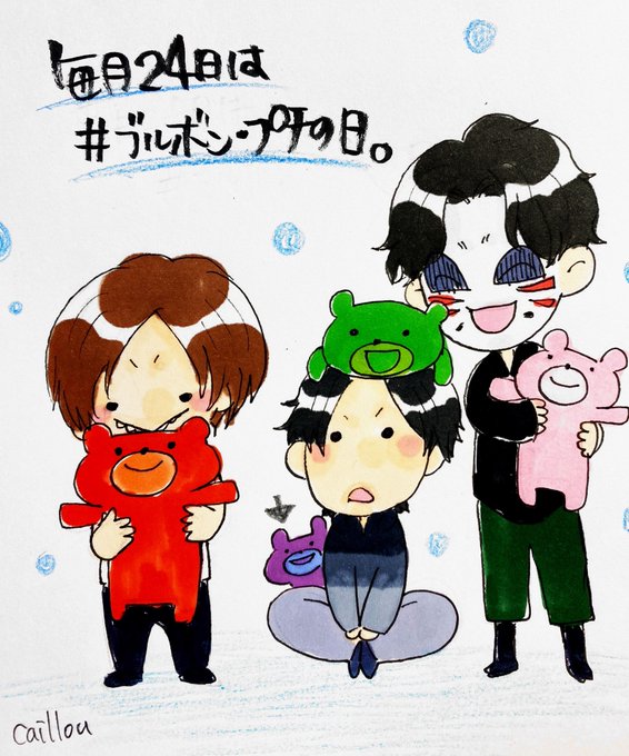 本日のボンバーさんで今日はなんの日は #ブルボン・プチの日。 メンバーカラーのプチクマさんが揃うなぁ…と思いながら描いてました✨ プチシリーズはチョコチップクッキーが好きです👀✨ #イラスト #ファンアート