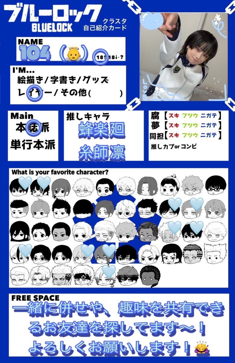 104(👼)と申します~!ブルロに沼り友達募集です!仲良くしてください🥰 #ブルロクラスタカード #ブルロレイヤーさんと繋がりたい #ブルーロック好きさんと繋がりたい #相互さんの相互さんと繋がりたい