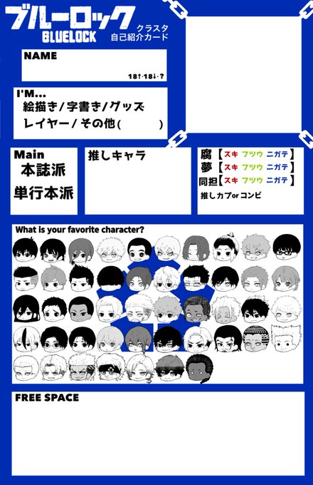 アニメ絶賛放送中!本誌も最高潮!という訳でお待たせしてたブルロクラスタカードを更新しました!こちらがテンプレです 他のファン達との交流に是非お使いください✨ フリー素材なので許可不要です🙌 #ブルロ好きさんと繋がりたい #ブルロクラスタカード #ブルロクラスタさんと繋がりたい