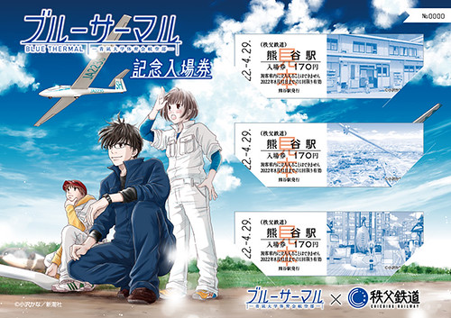 秩父鉄道さんが『#ブルーサーマル』の記念入場券とポストカードセットをすっごく可愛く作ってくださいました! 発売は来週4月29日。熊谷駅で購入の場合は特典でB3ポスターがつくそう。これで切符代のみ510円きっかりってすごく太っ腹なのでは…!よろしくお願いします✨ chichibu-railway.co.jp/blog/news/tick…
