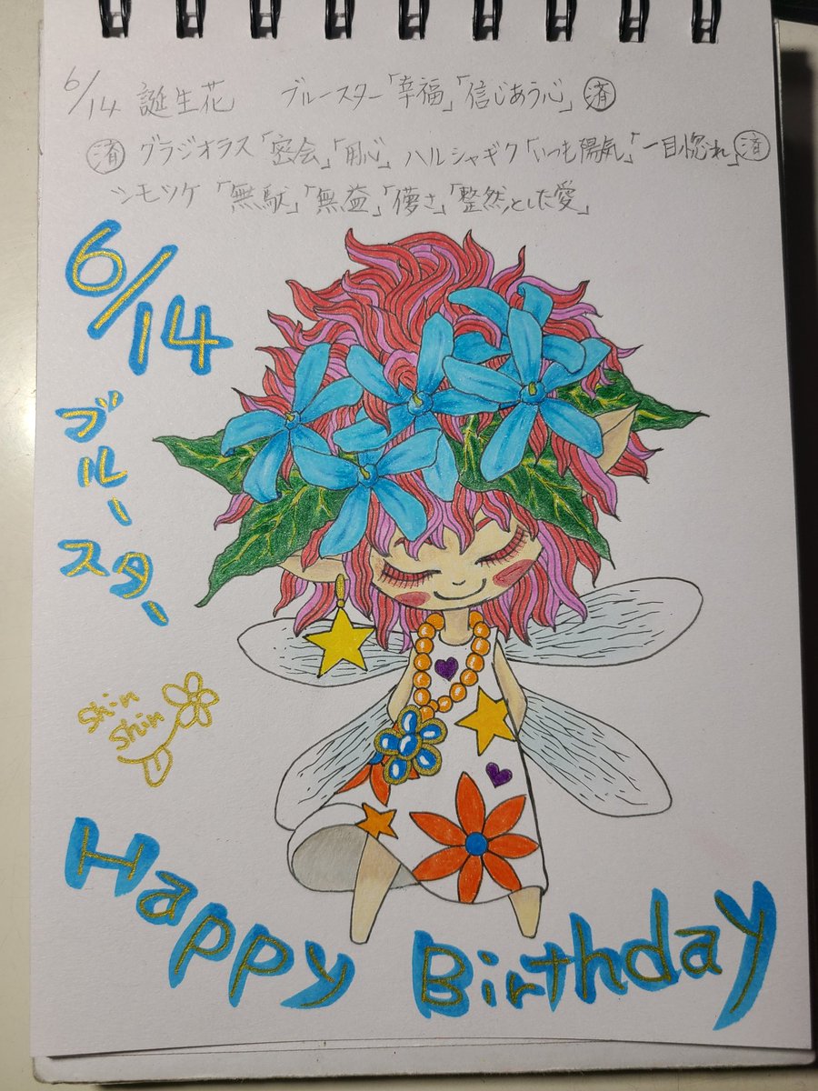 6月14日生まれの皆さん誕生日おめでとうございます😁😁✨ #毎日誰かの誕生日 #誕生日 #花の妖精シリーズ #毎日投稿 #イラスト #誕生日おめでとう #HappyBirthday #ブルースター #花のある暮らし #花 #illustration #handdrawing #fyp #オリジナルキャラクター