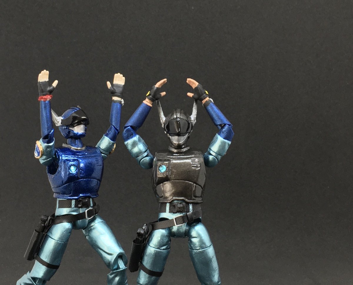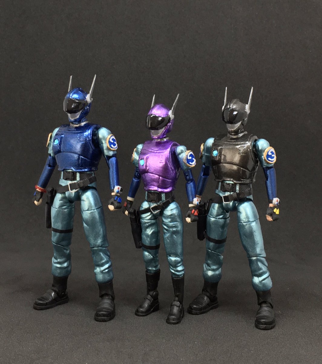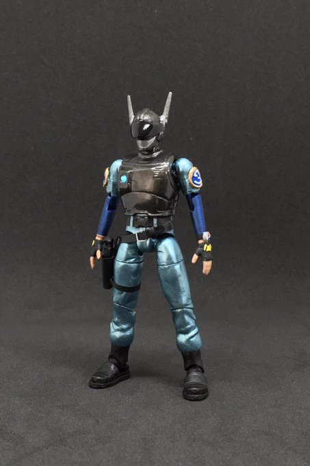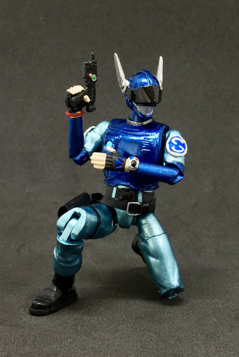 ブルースワット サラのアクションフィギュアを製作。 今回はアーリーガバナー Vol.6をベースに使用。 サラを基準にショウとシグの手足調節してたから並んだ時の差も良い具合。 やっぱ3人揃ってこそのブルースワットだしいじってて楽しい。 #ブルースワット #ヘキサギア #ニチアサフィギュア改造部