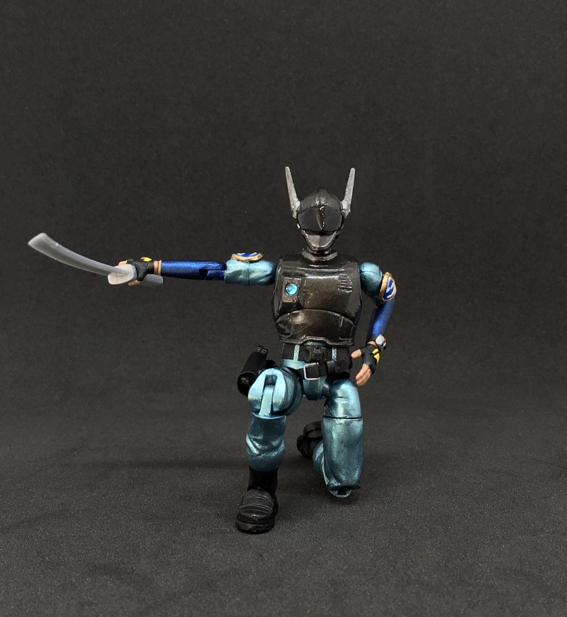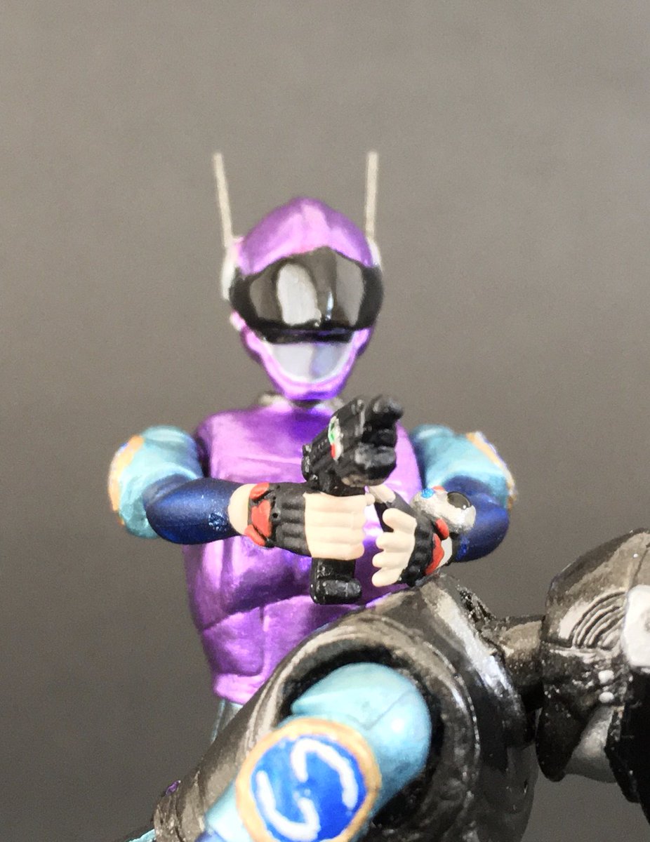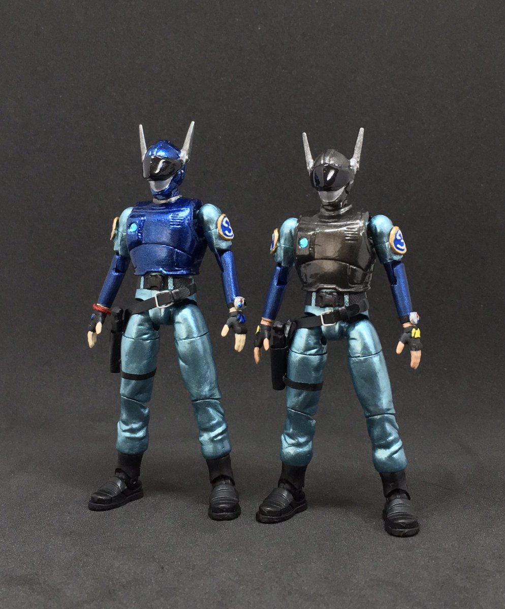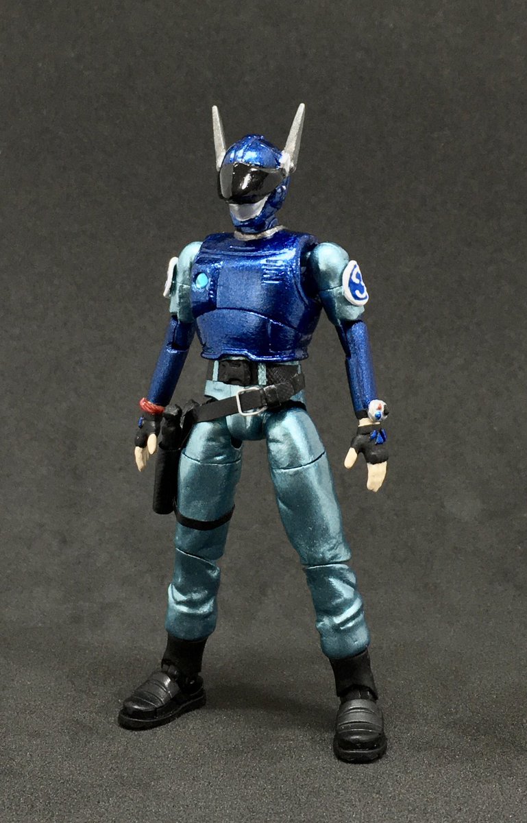 ブルースワット サラのアクションフィギュアを製作。 今回はアーリーガバナー Vol.6をベースに使用。 サラを基準にショウとシグの手足調節してたから並んだ時の差も良い具合。 やっぱ3人揃ってこそのブルースワットだしいじってて楽しい。 #ブルースワット #ヘキサギア #ニチアサフィギュア改造部