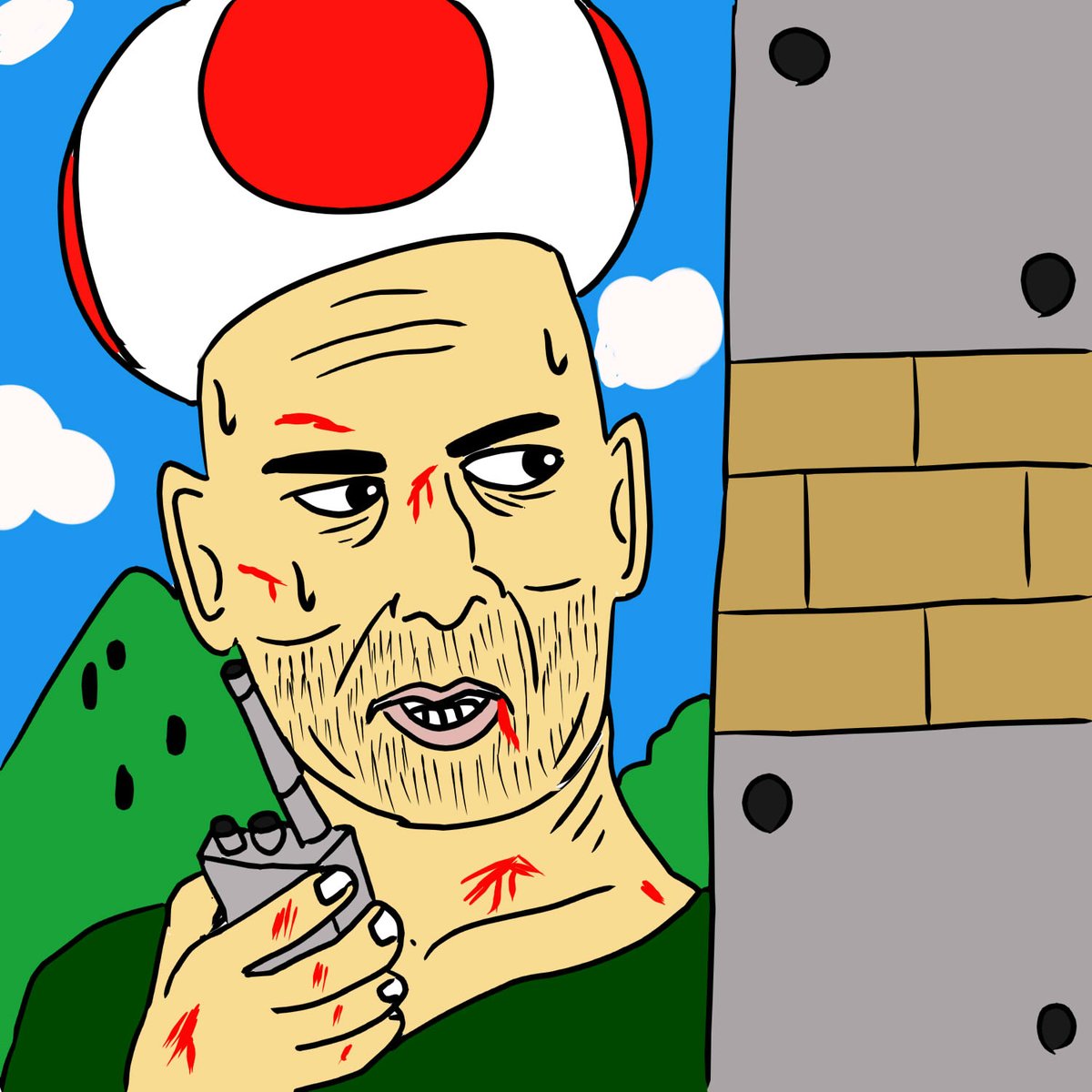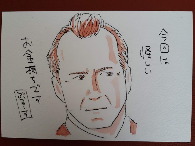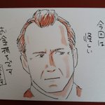 3/24(金)の午後ローは 『#ダイ・ハード』 「さて、タンクトップの色が変わるのはいつでしょう?」ぶるーす #午後のロードショー #午後ロー #午後ロー画文 #透明水彩 #万年筆 #ブルース・ウィリス
