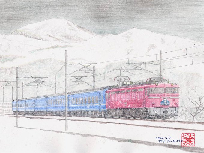 創作絵です。 鉄道をテーマに描きました。 『ブルートレイン子ちゃん』 #イラスト #創作 #イラスト好きさんと繋がりたい #絵描きさんと繋がりたい #冬の創作クラスタフォロー祭り #ブルートレイン #北斗星