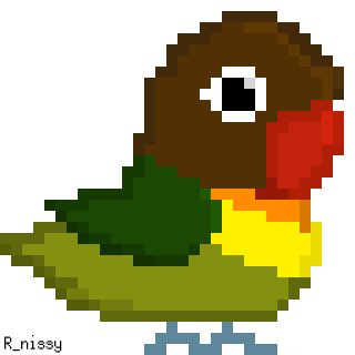 久しぶりのドット絵作成。 ブルーボタンちゃんがカラーチェンジしましたよ! ドット絵の描き方忘れちゃってたのでリハビリにはちょうど良かった。 楽しかったので新しいの描き始めてます。近々お披露目できそう(^^) #ボタンインコ #ブルーボタンインコ #キエリクロボタンインコ #ドット絵
