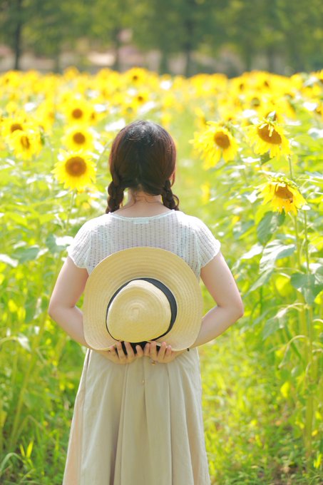 おはまʓ➰🔆ぼうし👒 ᐠ( ᐢ ᵕ ᐢ )ᐟヨッシャヨッシャワッショイ ᐠ( ᐢ ᵕ ᐢ )ᐟ・:* #ポートレート #ひまわり畑 #ブルーメの丘 #向日葵 #portrait #ポートレート好きな人と繋がりたい #140cmコスプレイヤー #被写体
