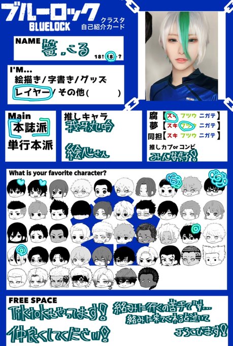 ブルロタグ初!!!! お友達ほしいです!!!!! コスプレメインですが絵もたまに描いたりします🙏✨️ RT と ♡ 両方ゆるゆる巡回予定です🥰 #相互の相互と繋がりたい #ブルロレイヤーさんと繋がりたい #ブルーロックレイヤーさんと繋がりたい #ブルーロック好きさんと繋がりたい