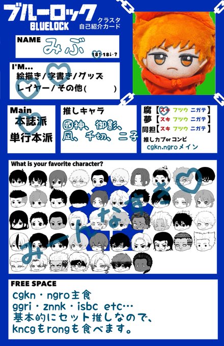 ブルロ好きなお友達が欲しいのでタグ失礼します〜🙌 レイヤーさん問わず色々な方とお話させていただきたいです💫 テンプレお借りします🙇♂️ #ブルーロック好きさんと繋がりたい #ブルロ好きさんと繋がりたい #ブルロレイヤーさんと繋がりたい