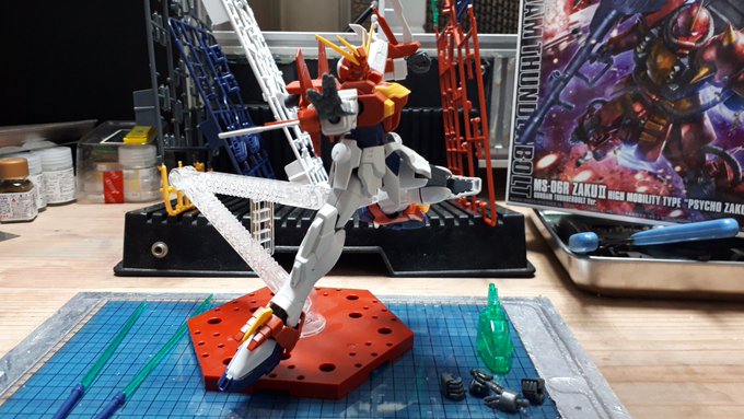 バックパック工作中。基本工作完了なんて、良く言ったもんだ。まだまだある!!改造中遊んでるのが1番楽しいかも #ブレイジングガンダム #ガンプラの画像貼るとRTされると聞いて #Gガンダム 風味