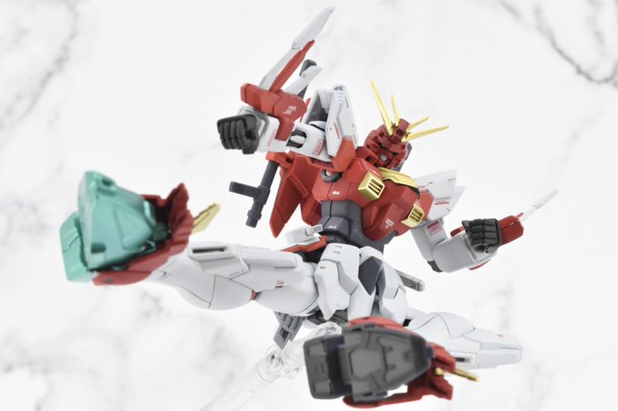 爆熱爆砕ブレイジングキックなど、ポージング👣 やはり苦手ですが、今回は説明書を参考に頑張りました笑 こんな時、フレキシブルに動く台座があると楽ですね😌(2/2) #模型座2022 #ブレイジングガンダム #ガンプラの画像を貼るとRTされると聞いて
