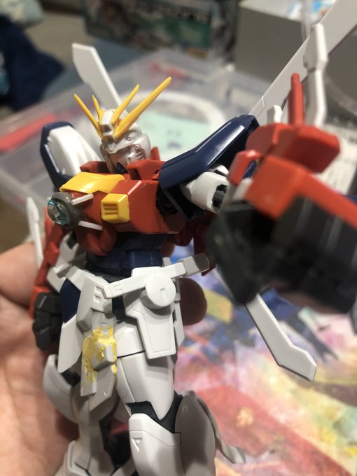 RGフォースインパルス少しお休み。子供達から、好きなガンダムは?と言われてGガンダムと答えて居たら、RGゴッドの話が、ゴッドなんて何処にもないから、ブレイジングガンダム改造!!#Gガンダム #ブレイジングガンダム #ガンプラの画像貼るとRTされると聞いて ブレイジングガンダム余剰パーツのみ