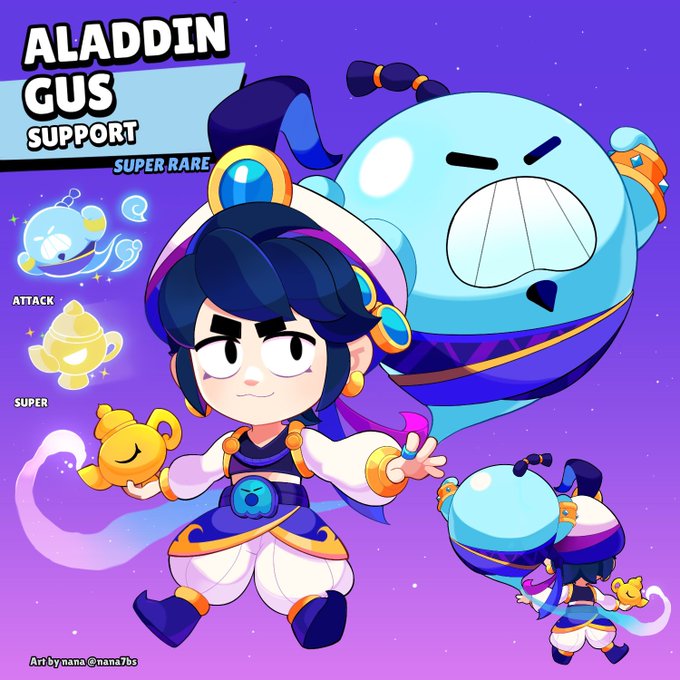 [Skin idea スキンアイデア] ALADDIN GUS アラジン ガス - I'll make your wish come true. - 君の願い叶えてあげる🧞♂️🌟 #BrawlArt #BrawlStars #ブロスタ #BrawlStarsArt #ブロスタ鋭角部
