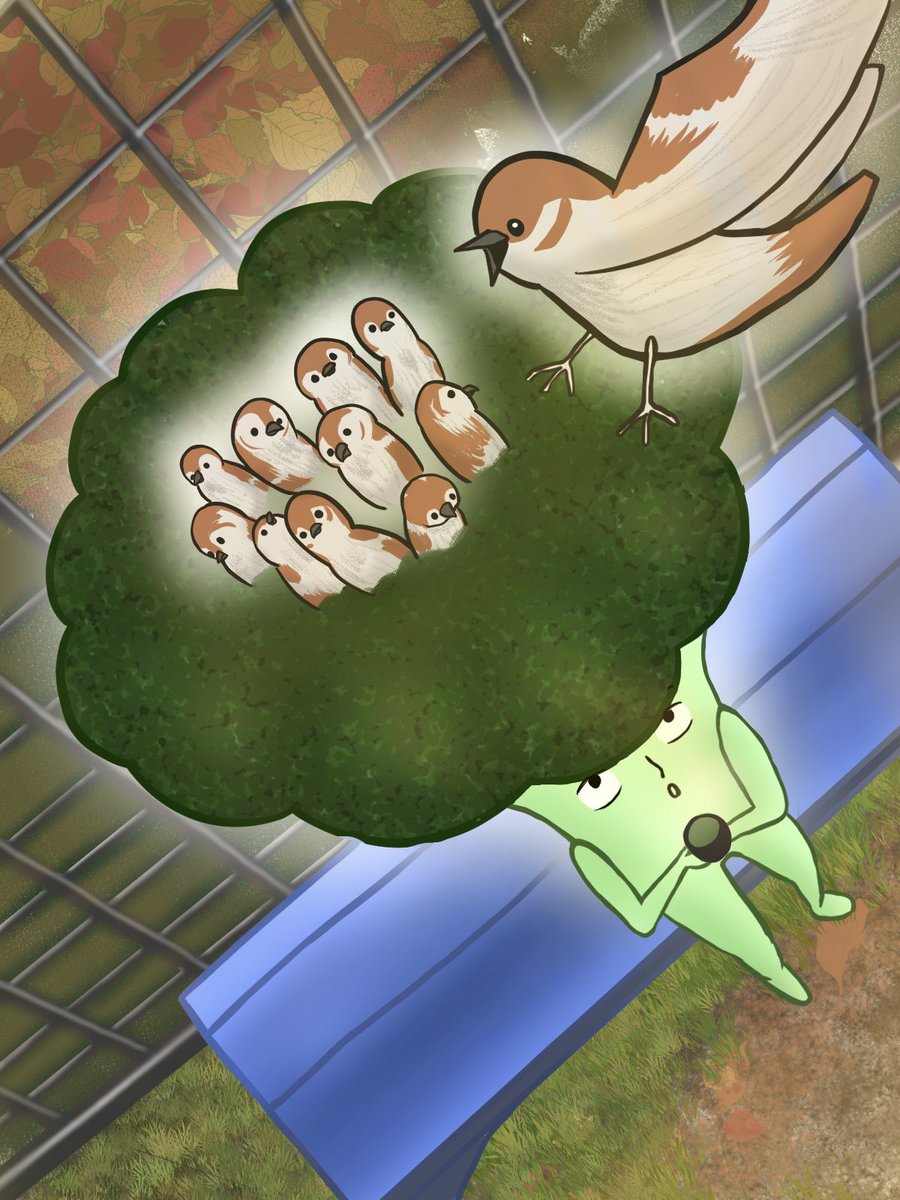 【ブロッコリーあるある25🥦】 クリスマスツリーにされがち 🥦:なになに‼︎俺どうなってる⁉︎(゚ω゚) #ブロッコリーあるある #ひろしイラスト練習記 #ブロッコリー #れんらくちょー