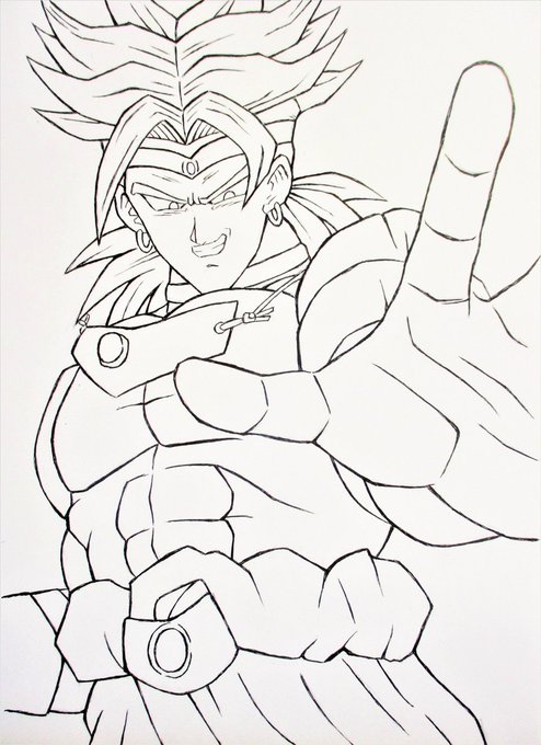 ドラゴンボールのブロリー(スーパーサイヤ人) の線画(ペン入れ)です🖋 後日、色塗り予定です😌 #ドラゴンボール #ブロリー #アナログ #イラスト #絵描きさんと繫がりたい #illustration