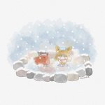 初めてのプレゼント- ̗̀🎁 ̖́- 初めてのおそろい(*´▽`*) 暖かくしておでかけしよう🐾 #感情を失ったモーモン #手編みのマフラー #マフラー完成 #プクリポ #プクリポイラスト #ドラクエ10 #ドラクエ10イラスト #絵描きさんと繋がりたい #デジタルイラスト #イラスト #おでかけ #クリップスタジオ