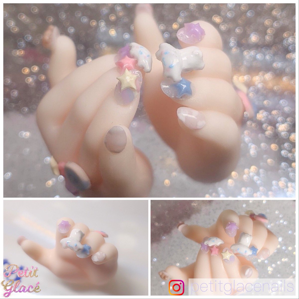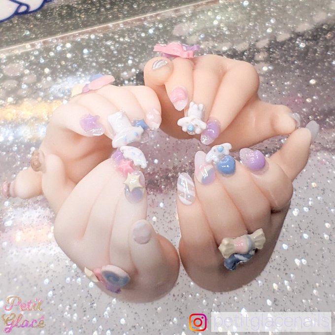 シナモロールネイル🍬Part.2 こちらは哺乳瓶とハートがモチーフのミルクver.🍼おしゃぶりもしてます💕 シナモンver.と一緒に手を繋ぐのを見るのが楽しみです❤️🤝 #MDDはいいぞ #FashionTail #プチグラ
