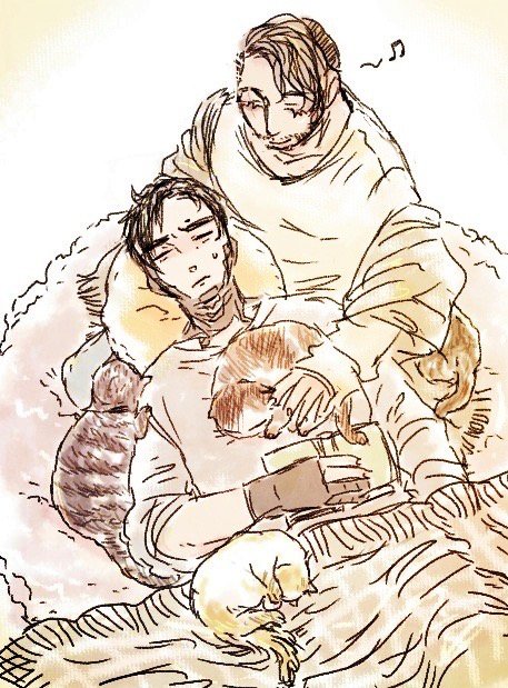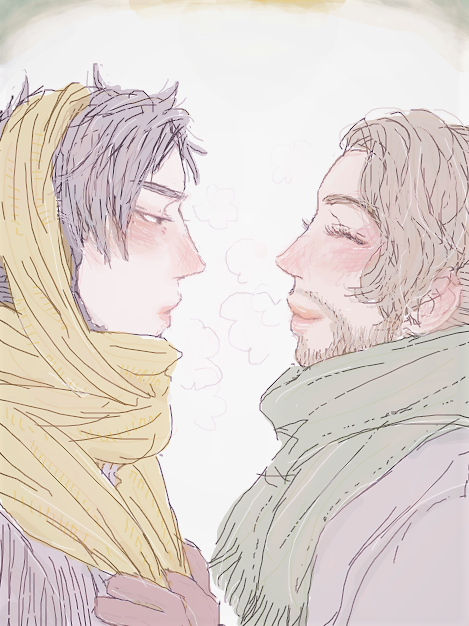 🧣マフラー🧣 @ptmr60odai #プトミラ版深夜の真剣創作60分一本勝負 💛「はいはいどうどう~♡」 💚「………こいつ………」 ※ 💛(金属の箇所が冷たくなければいいなあと思っている) 💚(多少気に食わないがかわいいので許すと思っている)