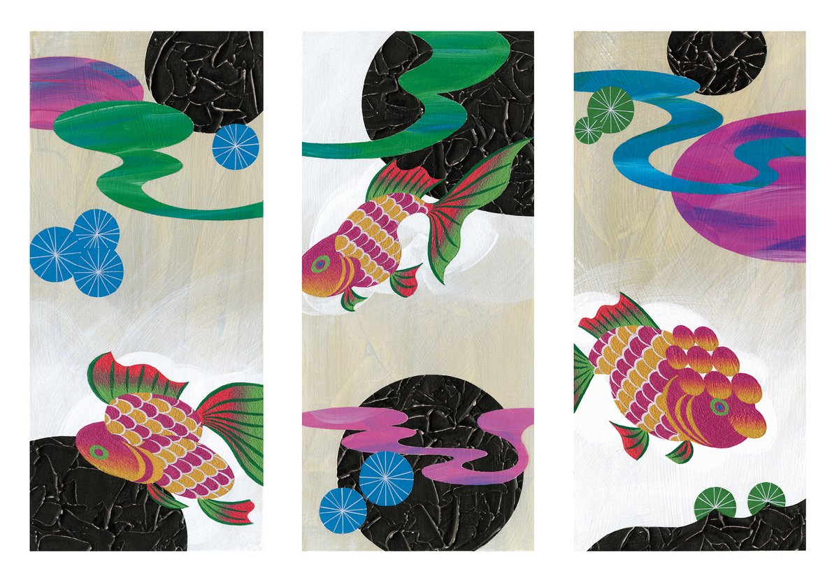 【金魚】 3人の友人達へ贈答用に描いたたぶん15年くらい前の作品。 この頃はバリバリアナログでの作品制作でした。 #イラスト #illustration #プライベートワーク #アクリル絵の具