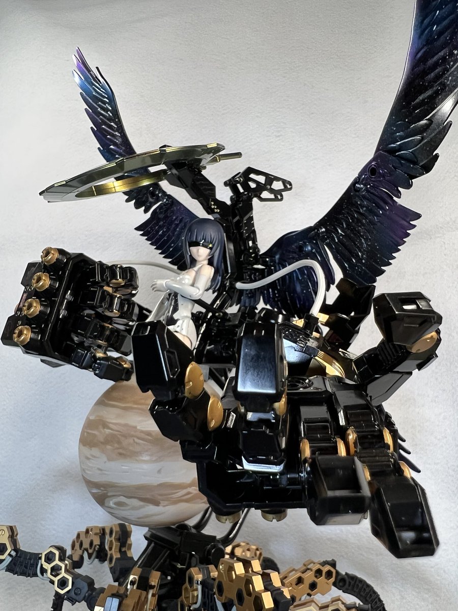 木星がモチーフの木星ちゃん!完成です なんかいろいろくっつけたらデカくてなりました、大変! 初めてやる事がいろいろ詰まった子、 完成して満足です❗️٩( 'ω' )و #メガミデバイス #プラネットデバイス