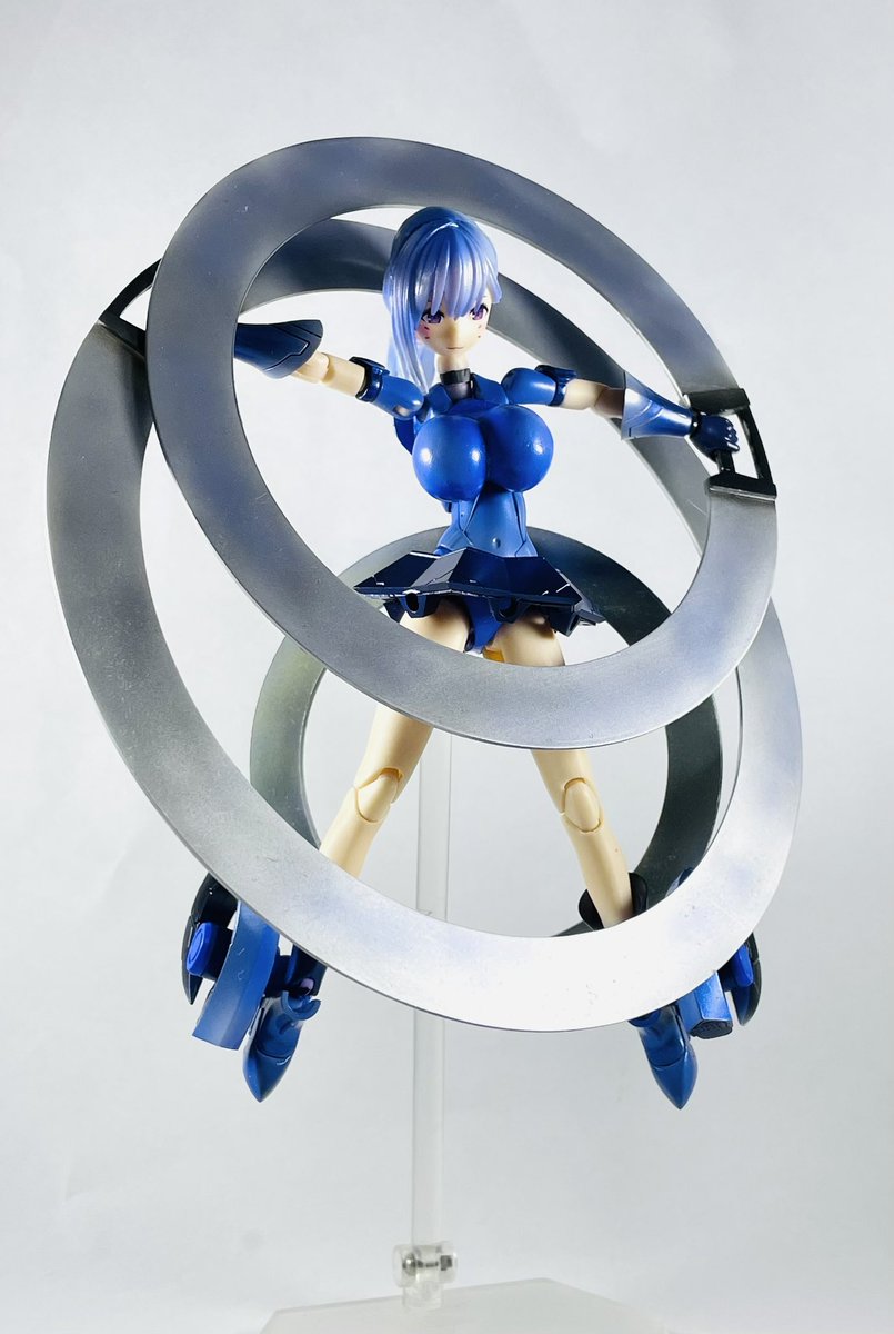スフィアース 「我観測す、故に宇宙あり」 地球モチーフの #プラネットデバイス 完成しました。 地球+天文学者をイメージしたドレスに身を包み炎と氷の刃を手に戦います。 設定はリプへ #メガミデバイス