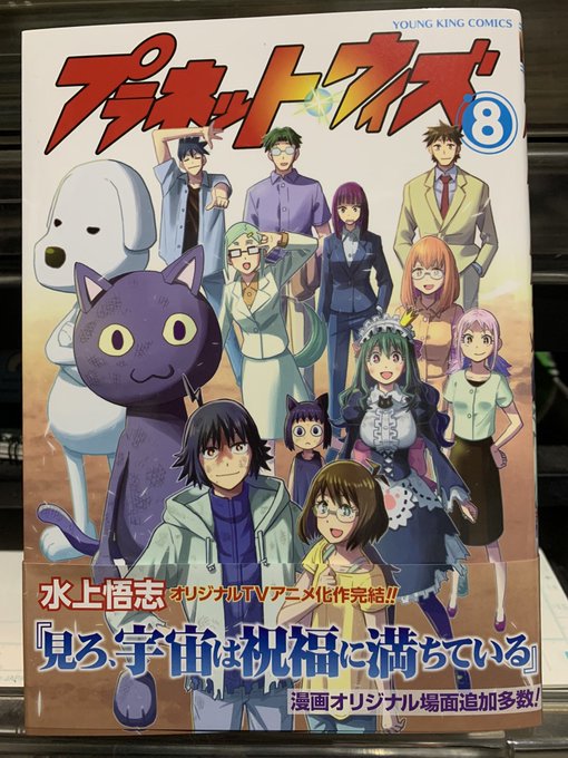 最終巻プラネット・ウィズ8巻をいただく。水上君の狂気の沙汰(ネーム1000ページ以上)を見せられちゃ手伝いを断るわけもなくデザインを少しだけさせていただいた。 お疲れ様です。ちょっと休んでって思うけど描いてないと不安だろうからさっさと次回作を見せてください。 #プラネット・ウィズ