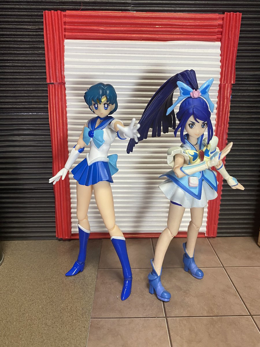 GOプリ新撮アーツ写 今回のモチーフポーズ比較 海のプリンセス そして写の小話 マーさんアーツはアニメ1カット目と髪の流れと顔の向きが逆にしかならないので・・この写は撮影後反転させてむりくり加工 #フィギュア撮影友の会 #プリキュアーツ #GOプリ