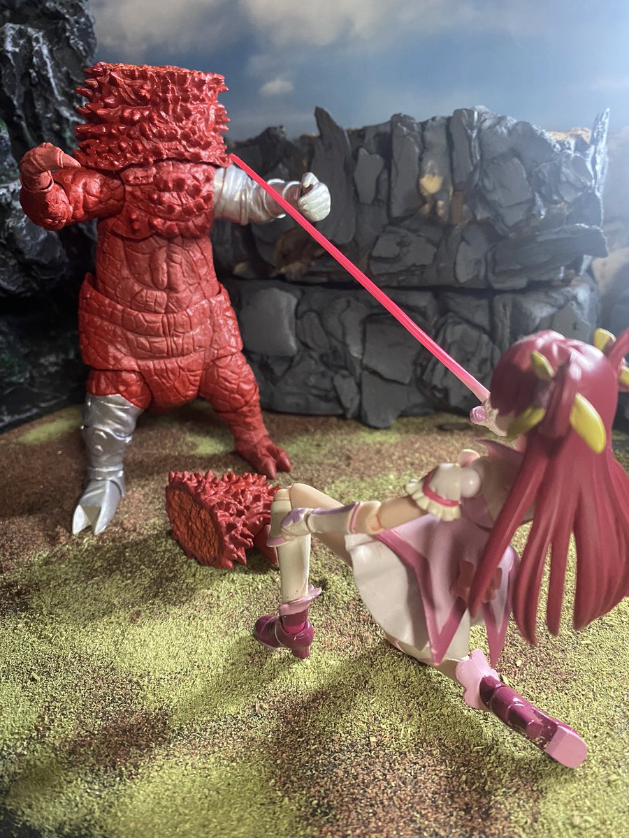 GOプリ新撮アーツ写 今回のモチーフポーズ比較 炎のプリンセス 1カット目の手をかざし炎が舞う場面 ちょうど良いエフェクトがあって自分的満足な出来栄え アーツもそうですがスカーさんは噛めば噛むほどにカッコ良く見えるデザインなのよ #フィギュア撮影友の会 #プリキュアーツ #GOプリ