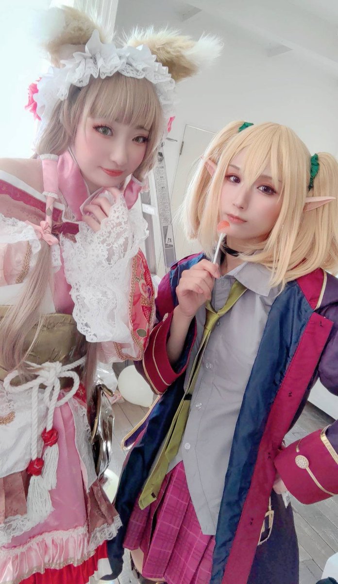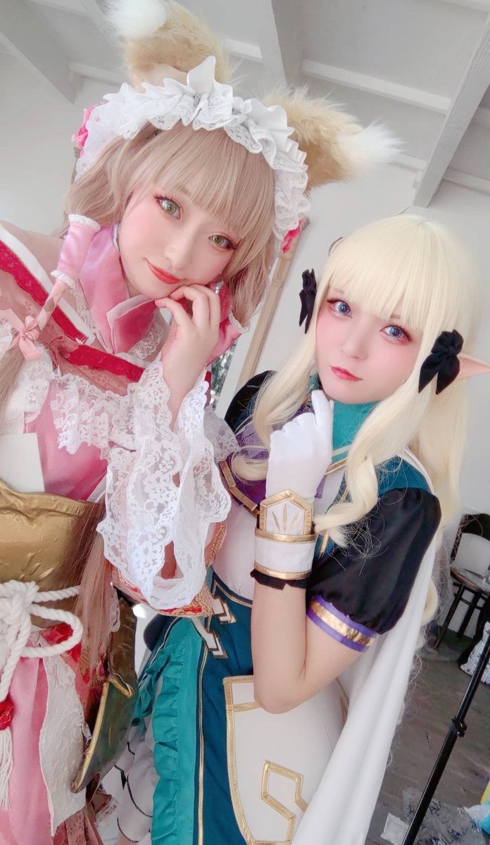 #プリコネR5周年大型あわせ ツーショ写真📸 いちごちゃん @diiiisney のキャルちゃん!Dハロやコミケで会うことが多かったけどずーっといつかプリコネ一緒にやりたいねって言ってたのが叶った瞬間でした…✨来てくれてありがとう!😭✨みみ作ウィッグ被ってもらったのだけどお耳がおそろっぽくて可愛い