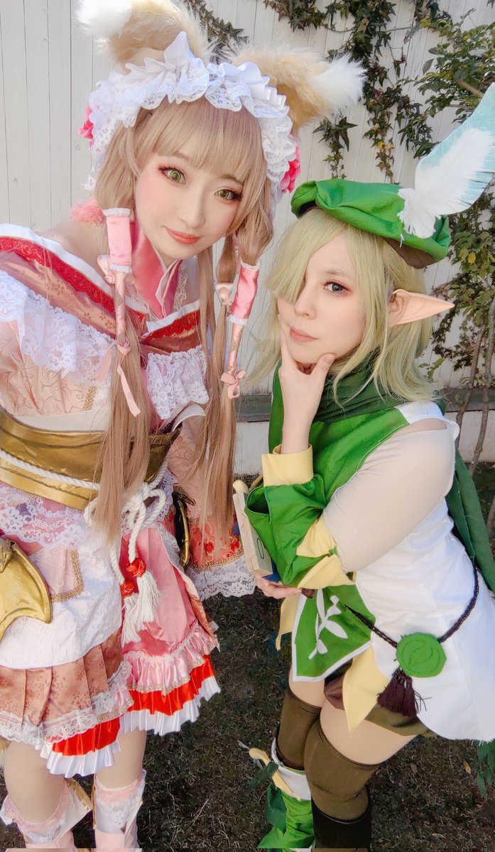 #プリコネR5周年大型あわせ ツーショ写真📸 さく(妹) @ltas_00 のコッコロたん🌱見るの3度目くらい?だけど衣装2代目で作り直して参加してくれたよ!質感も素敵な衣装なんだよ!👏造形部分もすごい!お陰で美食殿揃った〜!✨✨小道具も沢山作ってくれて荷物も乗せてくれてありがとう!😭😭✨✨
