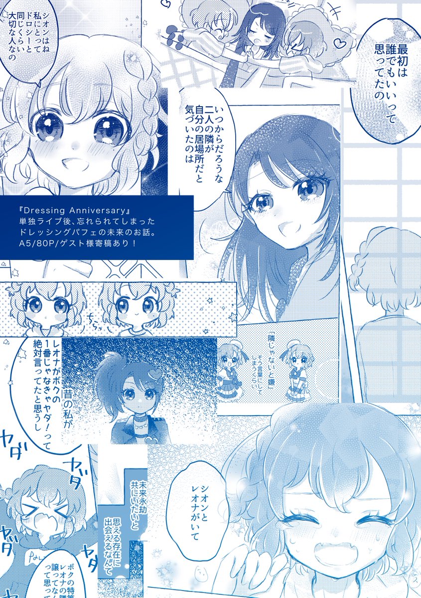 2023/4/2 #プリジャン40 頒布 ドレシ単独ライブ開催一周年記念本🎉 『Dressing Anniversary』A5/80p 通販┈┈┈ メロンブックス様🍈 bit.ly/40h221J BOOTH🏠 bit.ly/3nq3MHe ┈┈┈┈┈ ゲスト様あり🌟 特典でチェキ風カードプレゼント🎁✨️ よろしくお願いいたします❤️💚💙 twitter.com/ymncrn/status/…