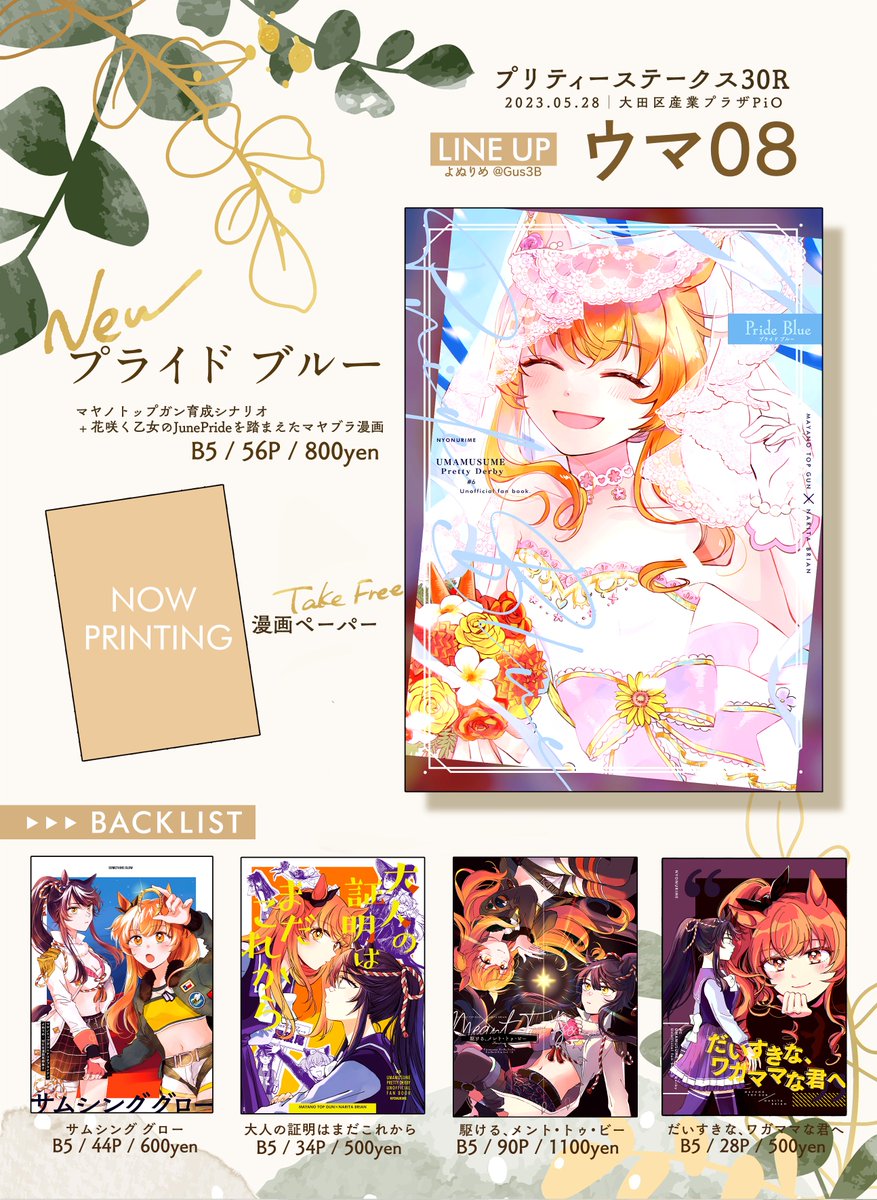 新刊はドレス勝負服が出来上がるまでちょっとスランプになるマヤノさんのマヤブラ漫画です B5/56P/800円(会場価格)#プリステ30R 通販ページ 🍈melonbooks.co.jp/detail/detail.… 🐯ecs.toranoana.jp/tora/ec/item/0…