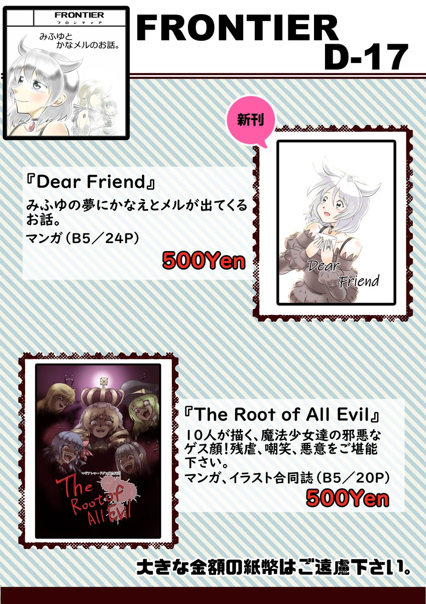 【もわもみも/D3】 10月17日のプリズムレコード7のお品書きです……! どうぞ気軽に遊びにきてやってくださいよろしくお願い致します🙇🏻♀️ #プリズムレコード #プリズムレコード7 #プリレコ #プリレコ7 合同のもわちゃん( @mowa_yururi )のお品書きは引用から見られます👉❤ twitter.com/mowa_yururi/st…
