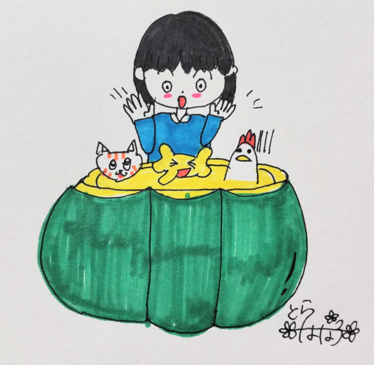 おはようございます!! #プリンの日 かぼちゃプリンに飛び込んだ3人!! ニワちゃん、落ち込まないで!! 今日も素敵な日曜日を〜🤗 #絵描きさんと繫がりたい #みんなで楽しむTwitter展覧会 #イラスト #油性ペン #マッキー画