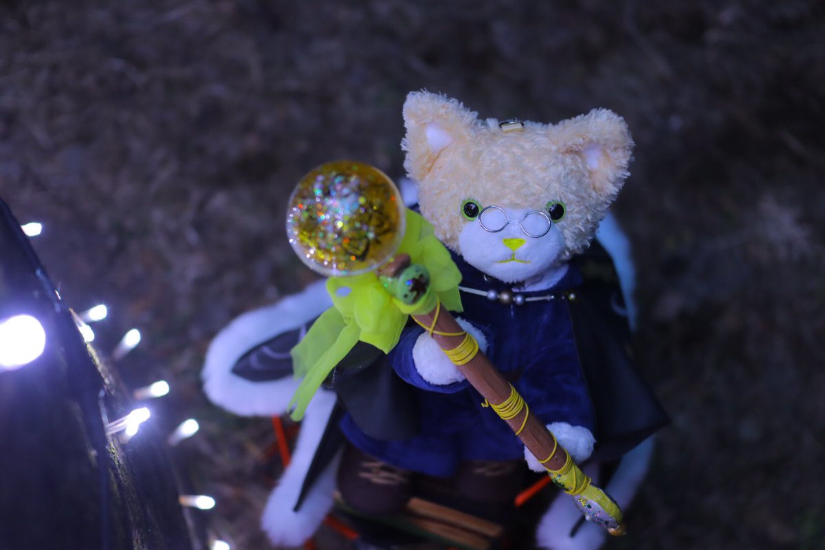 服はフード付き寝巻きだったり靴も公式の既製品ですが…。 マント、杖、ここには映ってないけど帽子を作りました。 #プリンスキャット #プリンスキャット写真部 #プリンスキャット手芸部 #プリンスキャット造形部