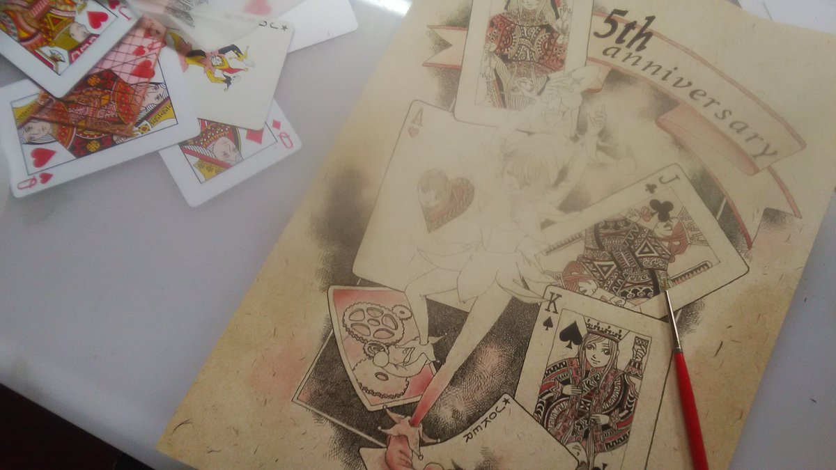 今月9日の《プリプリ》の『5周年記念イラスト』(*´ω`*)。 《トランプ》図柄、描いてて楽しかったです🎵 来週は《KinKi》のUPする‼️✨ ・・・やっぱり『〆切(笑)』っつか期限が無いと、 描かなくなっちゃったなぁ⤵️ #アナログ手描き #イラスト #プリンセスプリンシパル #5周年記念 #anniversary
