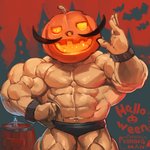 ハロウィン版 Physical Pudding Man(以下PPM)。 カボチャ頭のPPMが来たらプロテインをあげてね。 #Halloween #ハロウィン #Puddingman #プリンマン #筋肉 #muscle