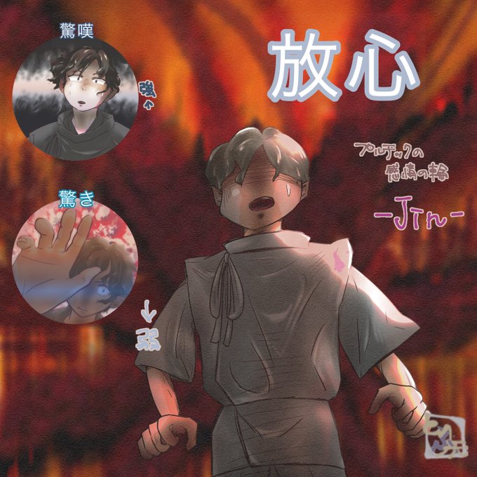 枯葉も肌もカサカサ🍁おはです🍁🍂 #プルチックの感情の輪 24の感情 9枚目は 「驚嘆」です ┈┈┈┈┈┈┈┈┈┈ 炎と煙に掻き消されそうな掠れかすれのお館様の声が確かに聴こえてきた。 ┈┈┈┈┈┈┈┈┈┈ #イラスト #絵描きさんと繋がりたい #コミチ キャラクター紹介