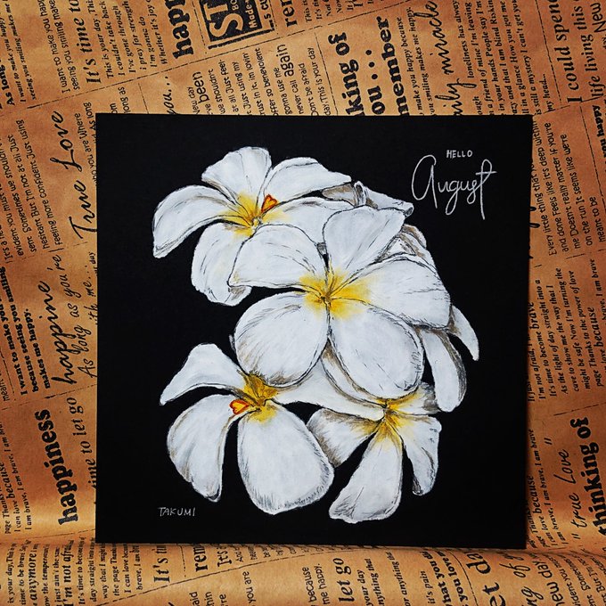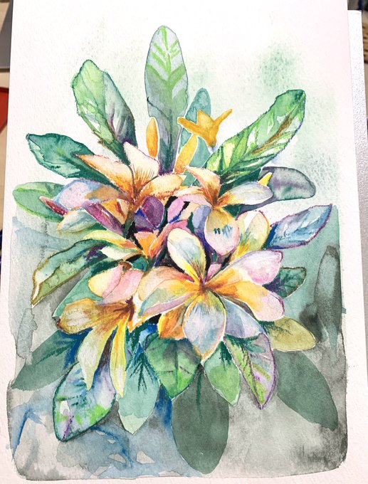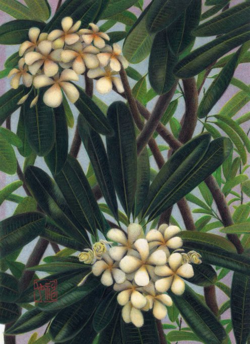 プルメリア 花言葉 「気品」、「日だまり」、「情熱」、「恵まれた人」、「内気な乙女」 おやすみなさーい♪ #イラスト #イラスト好きさんと繋がりたい #プルメリア #花 #私の絵柄が好みって人にフォローされたい