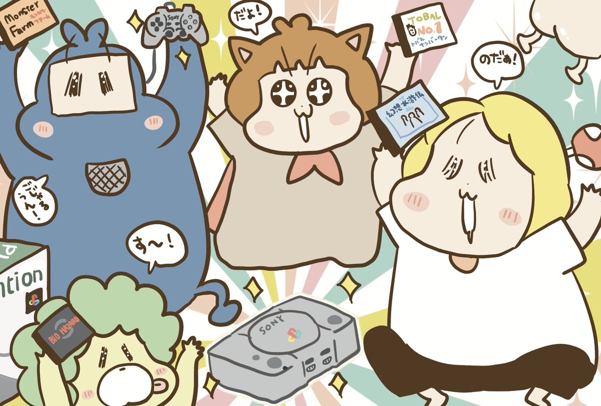おはばコ~☀️ 今日は「#プレイステーションの日」 だよ🎮 トロとジュンとサルゲッチュとスネークさんが来てくれたよ プレステって面白いゲームたくさんあるよねー! #トロにたくさん言葉おしえたな #どこでもいっしょ #サルゲッチュ #メタルギアソリッド #今日は何の日 #12月3日 #一日一絵 #あおばコ